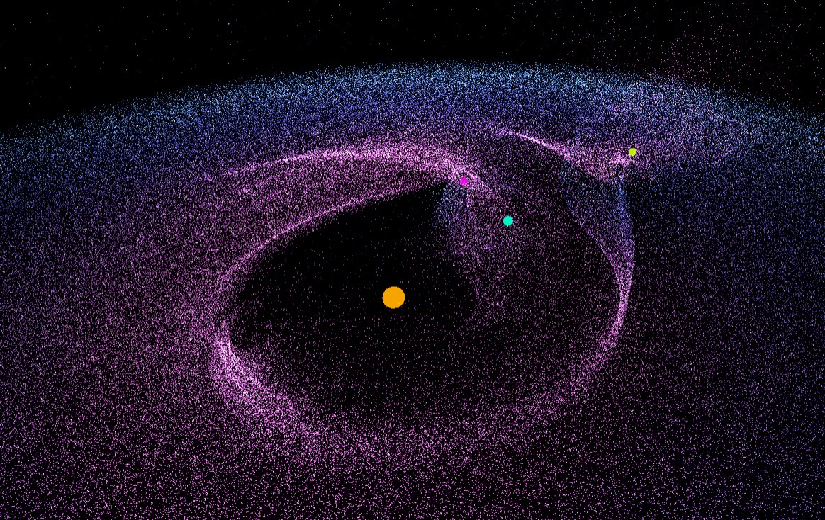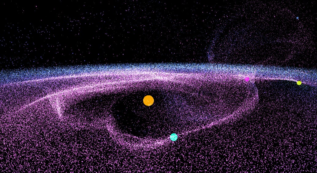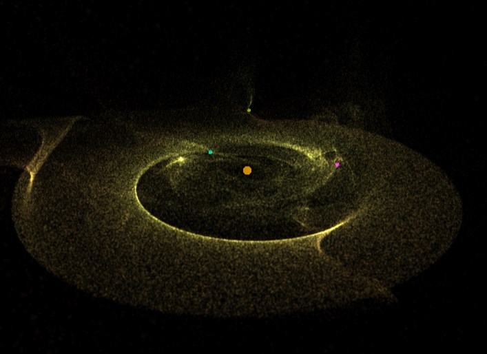 Fist attempt at galaxy simulation - using rational trigonometry (no sine/cos etc) and standard algorithms.